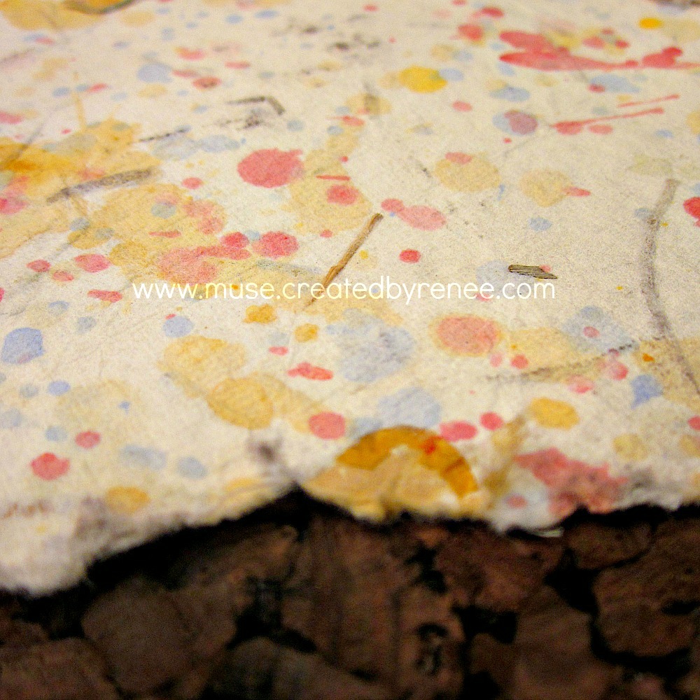 A sheet of unique textured paper for scrap crafts, journaling, gift wrap, and other projects. Soft, textured flower and fiber flecked paper, with a colorful spattered pattern, created with watercolor. This rough-hewn sheet has a soft, lightweight feel similar to paper egg cartons, and includes irregularities and imperfections. Back side is not embellished. You will receive the single sheet shown.